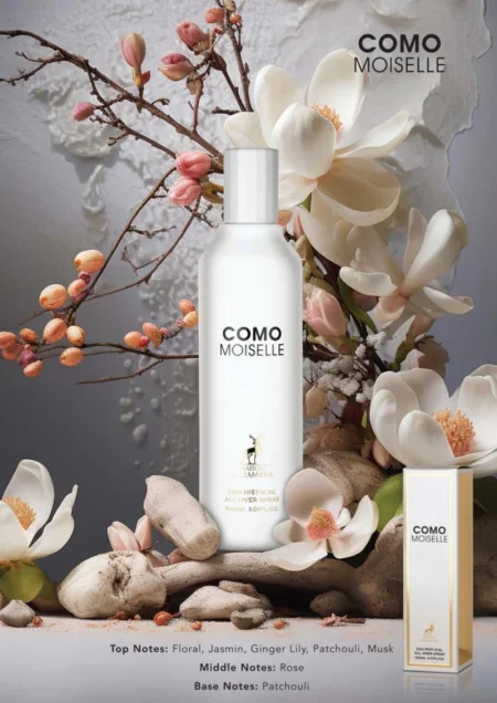Como Moiselle é uma fragrância floral sofisticada e envolvente, perfeita para quem busca elegância e feminilidade nos pequenos detalhes. A saída revela um buquê delicado com jasmim, lírio gengibre, patchouli e um toque almíscarado, criando uma abertura encantadora. No coração, a rosa floresce suavemente, adicionando romantismo e frescor. A base, marcada pelo patchouli, confere profundidade e fixação prolongada nos fios. Um perfume em spray para cabelo que traduz charme e presença com sutileza e refinamento.